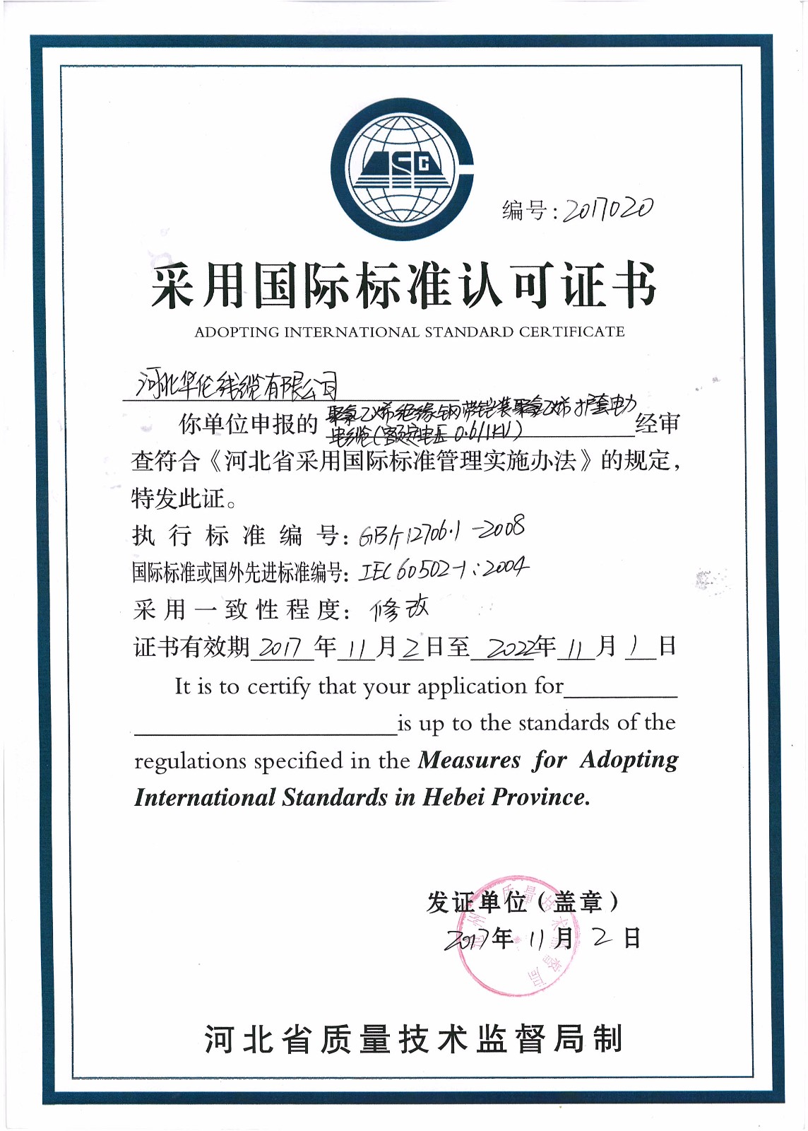 采用國際標(biāo)準(zhǔn)認(rèn)可證書