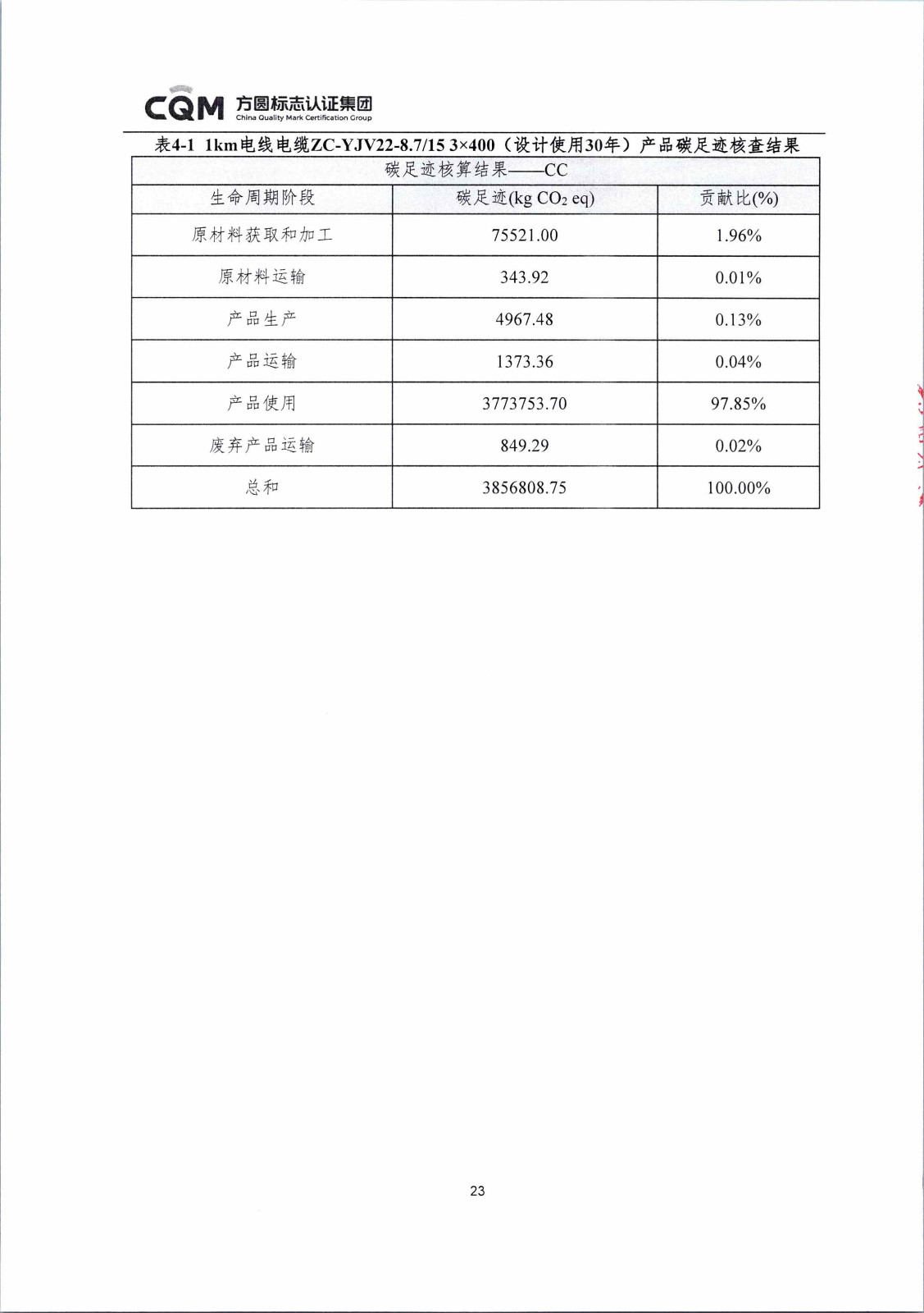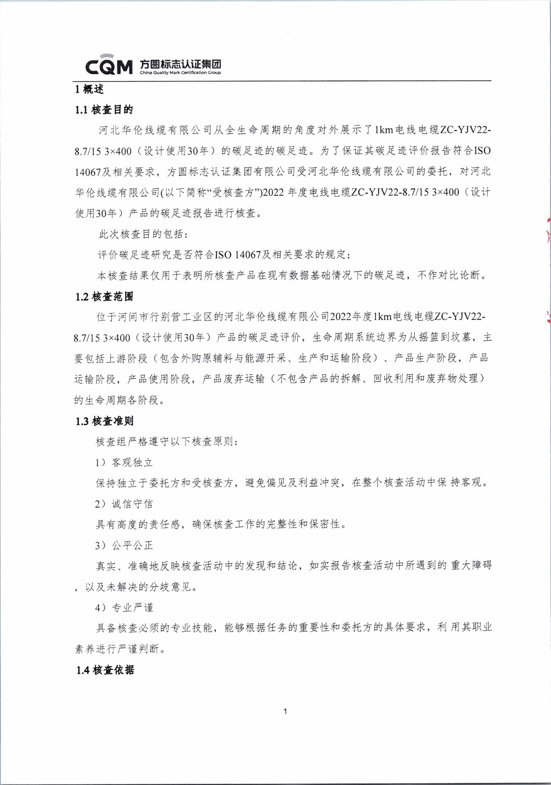 河北華倫線纜有限公司1km電線電纜碳足跡報告(蓋章)